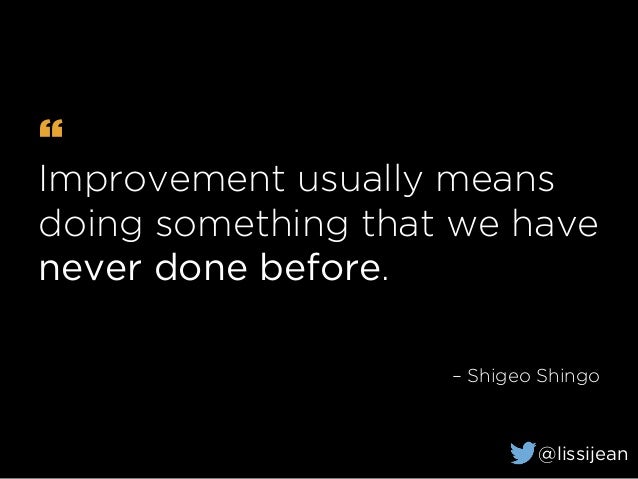 - 7. @lissijean#AgileOTB “ Improvement usually means doing something that we have never done before. – Shigeo Shingo