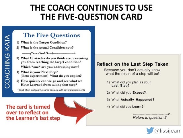 - 24. GOAL TARGET CONDITION CURRENT CONDITION OBSTACLE STEP EXPECTED LEARNED Sellers should be able to be self sufficient. Sellers call office less than twice a week. Sellers call office more than twice a week. We’re not sure how often they are calling now. Measure how often they are calling over the next week. They are calling about 4 times a week each. They call about 7 times per week. @lissijean#AgileOTB