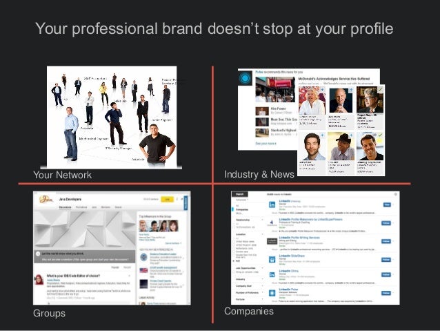 - 11. Your professional brand doesn’t stop at your profile Your Network Industry & News Groups Companies