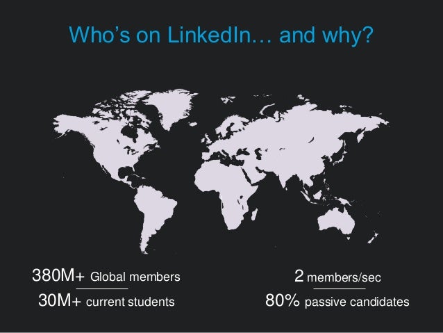 - 4. 380M+ Global members 2 members/sec 30M+ current students 80% passive candidates Who’s on LinkedIn… and why?